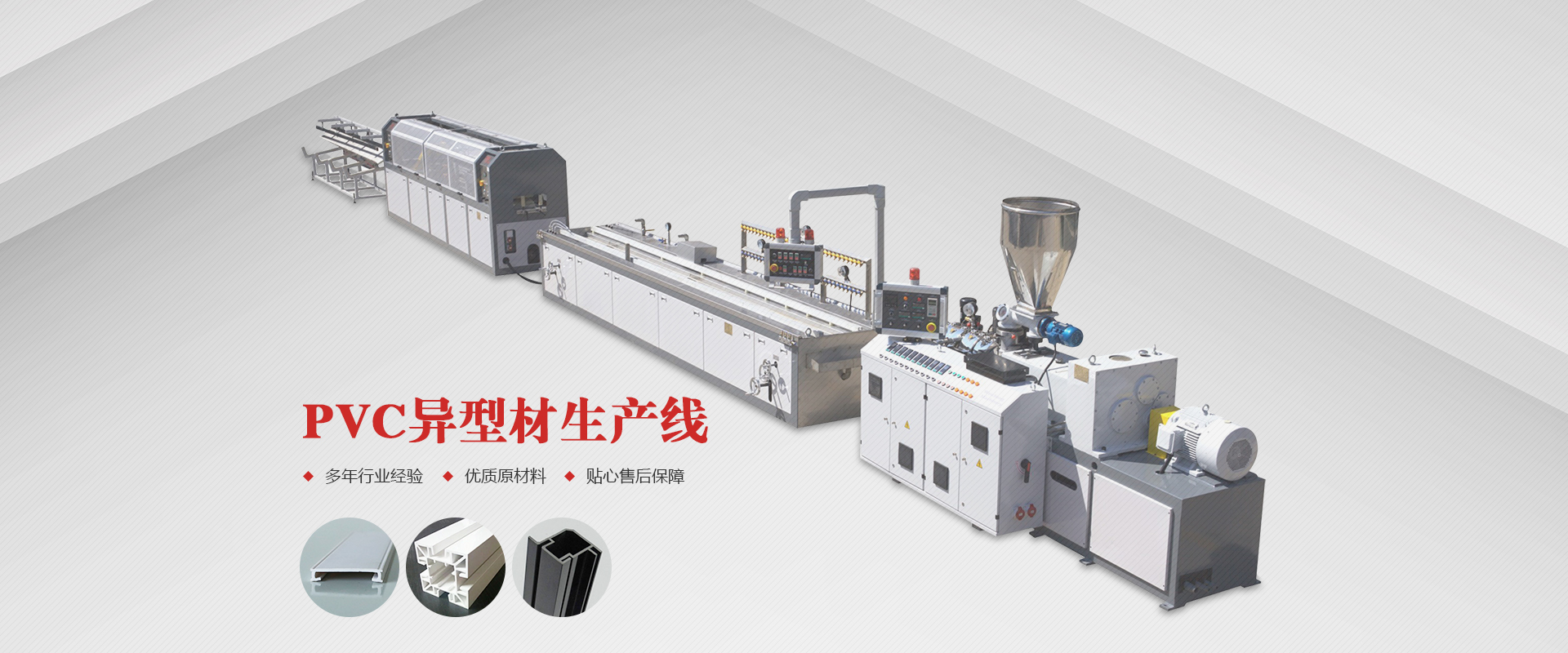 公司擁有多年塑料機(jī)械行業(yè)經(jīng)驗(yàn),主要產(chǎn)品有管材生產(chǎn)線、型材生產(chǎn)線、造粒生產(chǎn)線、擠出機(jī)、高速混合機(jī)、擴(kuò)口機(jī)、除塵器、磨粉機(jī)、上料機(jī)、破碎機(jī)、真空箱等各種塑料機(jī)械